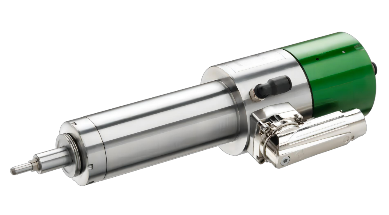 适合用于加工环境苛刻、精度高的PCB电路板加工场景中。如钻孔、铣削、研磨等应用,且可选配带有碳刷的ESD防静电保护装置,并支持夹头定位及锥面清洁的功能。设计上,沿用经典的纤细化不锈钢机身设计使重量仍然维持在1.0kg,以便集成于各类的自动化生产线中并提升了设备的空间利用率。主要参数:转速范围为6000~100000rpm、功率S1:680w/max.860w、扭矩S1:8Ncm/max.12Ncm、加工精度(锥面挑动)≤1um。