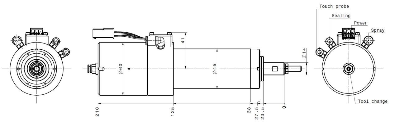功能配置:集成PTC电机保护功能及4-4.5bar的气动换刀系统、外夹具+内置外部喷雾的冷却系统(过滤器密度50um)、IP55密封气15±5NI/min的保护等级、2x油脂润滑的陶瓷轴承。刀具系统:C5/夹持范围Max.Ø6.0mm、锥面跳动≤1um、刀具跳动≤10um-20mm after collet。综上所述,通过上述一系列的组合设计,很好地解决了高功率牙科主轴负荷运行时的过热问题且满足了对洁净室环境及加工精度的要求。